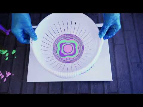 Psychedelic Neon Paint Bomb//Colander Pour//Acrylic Paint Pour - Easy Acrylic Trippy Paint Designs
